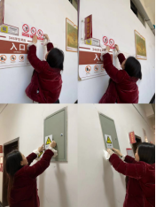 (马丽莎主任带领实训中心教师张贴安全标识)