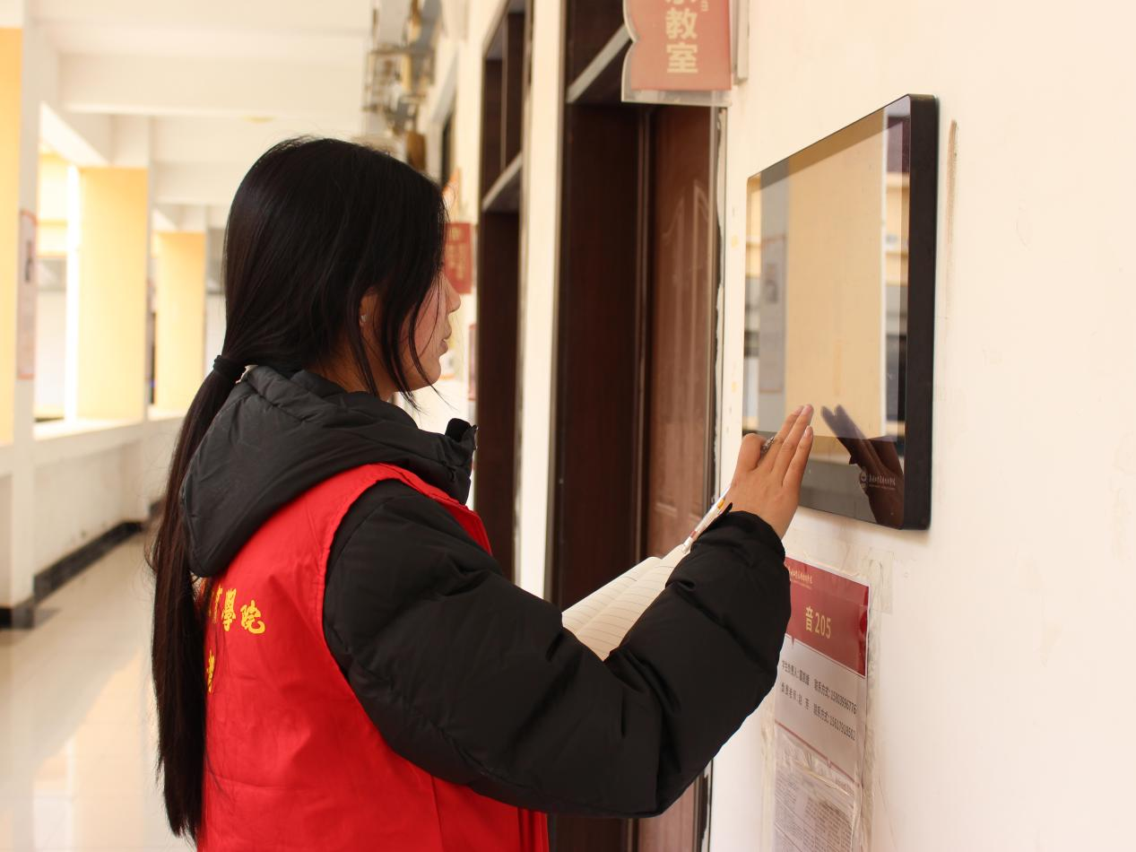 近日,在校园楼道里,志愿者们分工协作,细致开展设施排查工作。他们手持纸笔,认真记录每间教室与宿舍的信息,指尖轻触电子屏,仔细核对设备运行数据,以严谨细致的态度守护校园日常运转。