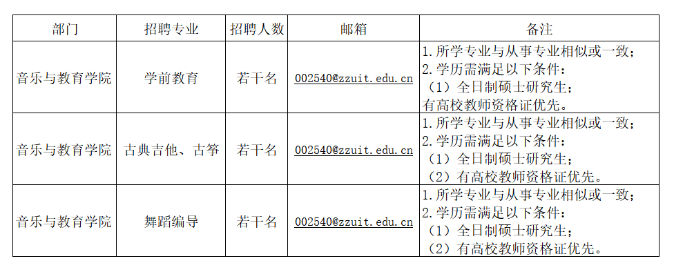 根据学院未来发展需要和师资队伍建设规划,现面向社会公开招聘兼职教师,具体岗位如下: