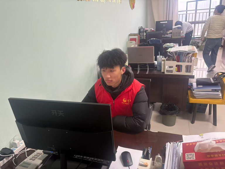 在志愿服务的过程中,他始终保持耐心与热忱,认真负责、一丝不苟,用实际行动诠释着新时代青年的责任与担当。虽然日常工作琐碎平凡,但他毫无怨言,始终坚守岗位、踏实付出,在实践中锻炼能力,在服务中收获成长。这段经历让他更加明确未来发展方向,立志要将个人成长融入家乡和祖国的发展建设之中。
