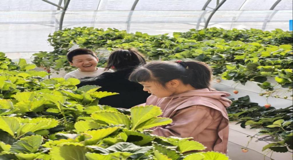 随后的草莓采摘实践环节,吕佳乐带领孩子们走进现代化农业产业园。她向孩子们科普草莓的生长习性与无土栽培技术,示范正确的采摘手法。孩子们提着小篮穿梭在藤蔓间,亲手摘下饱满鲜红的果实,欢声笑语充满了整个大棚。吕佳乐还鼓励大家将草莓分享给家人,让劳动成果传递温暖与感恩。