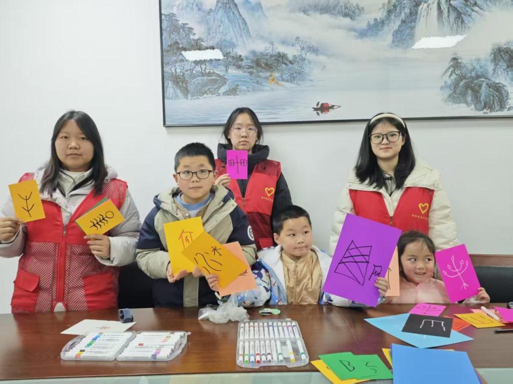 同时开展传统文化汉字趣味课堂,与孩子们一同探寻象形文字的起源与奥秘,引导孩子观察象形文字的字形特点,携手提笔描摹、绘画象形文字,让孩子们在趣味涂鸦与书写中感受汉字的形意之美,领略中华传统文化的深厚底蕴。
