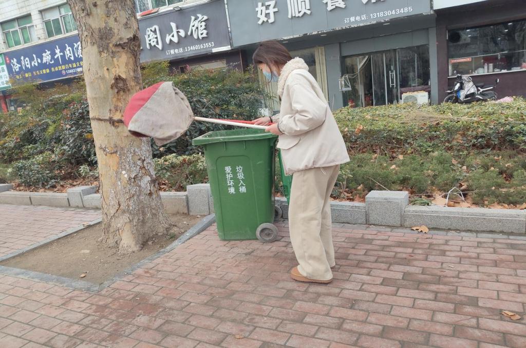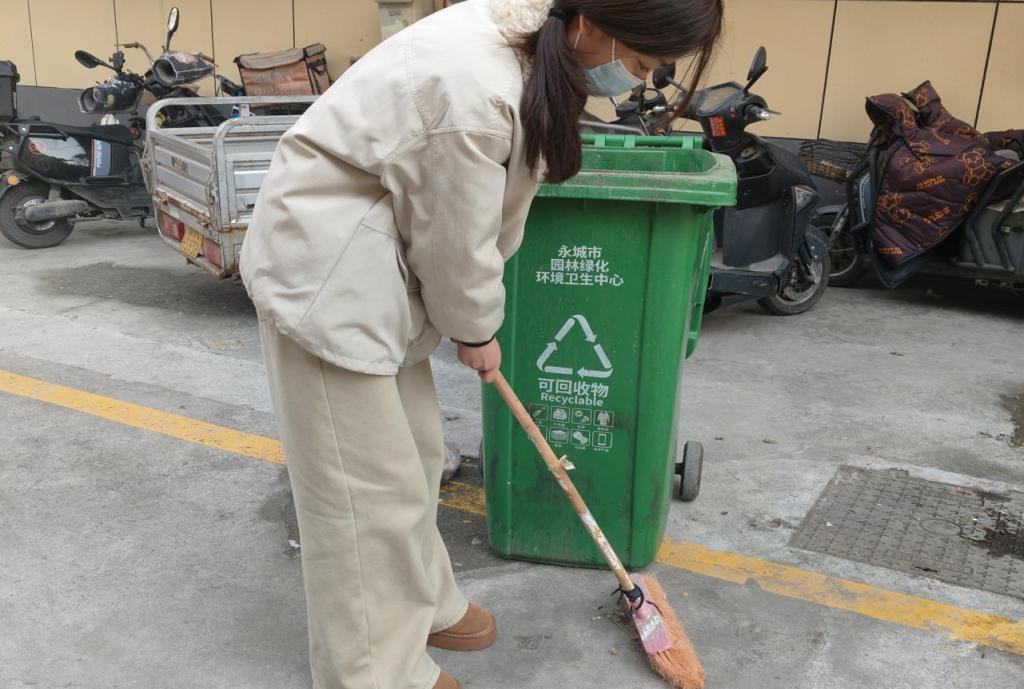 活动当天,刘佳敏到指定的城市角落集合,她手持橙色扫帚,在写有“永城市园林绿化环境卫生中心”标识的绿色垃圾桶旁清扫地面;另一位则手持红灰大扫帚,将落叶与杂物扫入印有“垃圾入桶 爱护环境”标语的桶中。经过努力地打扫,整座城市便焕发出一种由内而外的清新气质,这不仅仅是物理空间的净化,更是城市文明程度的生动注脚。