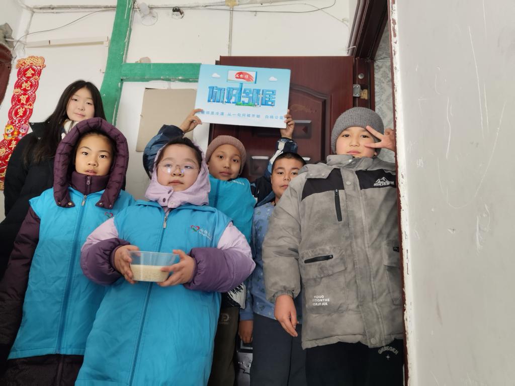 活动第二天,志愿者与孩子们一同将首日收集的米粮熬制成香甜软糯的腊八粥,下午带着一碗碗热粥,送到社区快递员、环卫工人等一线工作者手中,为寒冬里的城市守护者送去暖心关怀。
