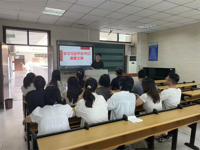 (图文/李英姿)2025年9月16日,音乐理论教研室的全体成员于音206开展了政治理论学习活动,此次学习由教研室主任乔晓磊主持,旨在深入学习习近平总书记在2025年第17期《求是》杂志上发表的署名文章《弘扬伟大抗战精神,向着中华民族伟大复兴的光辉彼岸奋勇前进》。