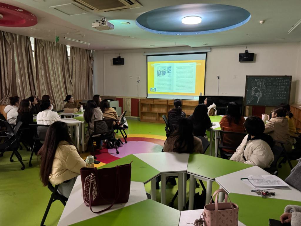 学习中,教研室负责人系统解读全国两会关于教育强国建设、学前教育优质普惠发展的部署要求,重点领学总书记重要文章精神,阐释统筹教育科技人才一体发展、培育新质生产力等要求与学前教育领域的内在联系,结合行业发展趋势,引导教职工把握学前教育在夯实人力资本、服务经济社会发展中的重要作用。