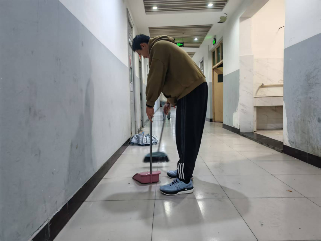 在学校的宿舍楼走廊里,一名志愿者手持扫帚、簸箕,认真地清扫着地面的杂物与灰尘。他的举动,不仅为同学们营造了干净、舒适的居住环境,更传递出乐于奉献的精神。这份对公共区域的用心维护,让同学们在走出宿舍时,能拥有一份清爽的心情,也让“爱护环境,人人有责”的意识在潜移默化中深入人心。
